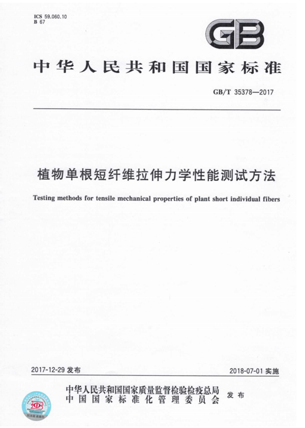 上海中晨數字技術設備有限公司與國際竹藤中心等單位共同起草國家標準GB/T35378-2017《植物單根短纖維拉伸力學性能測試方法》,由中華人民共和國國家質量監督檢驗檢疫總局和國家標準化管理委員會于2017年12月29日發布,2018年7月1日實施。