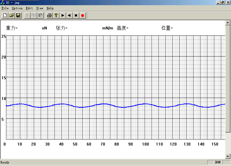 調(diào)出應(yīng)用程序jmp.exe,在option菜單中單擊Connect選項(xiàng),使電腦與界面膨脹流變儀連接,如果屏幕右上角實(shí)測(cè)數(shù)據(jù)不斷更新,說(shuō)明計(jì)算機(jī)與儀器已經(jīng)連接成功。